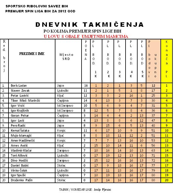 Svima čestitke na osvojenim plasmanima u ligi 2012. godine – bistro u slobodnom ribolovu, pogotovu onima koji se već sada spremaju za narednu sezonu Premijer SPIN lige BiH.
